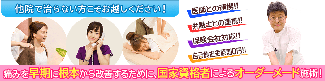 私共は交通事故のケガの施術には特にこだわっていて、豊富な経験がございます。